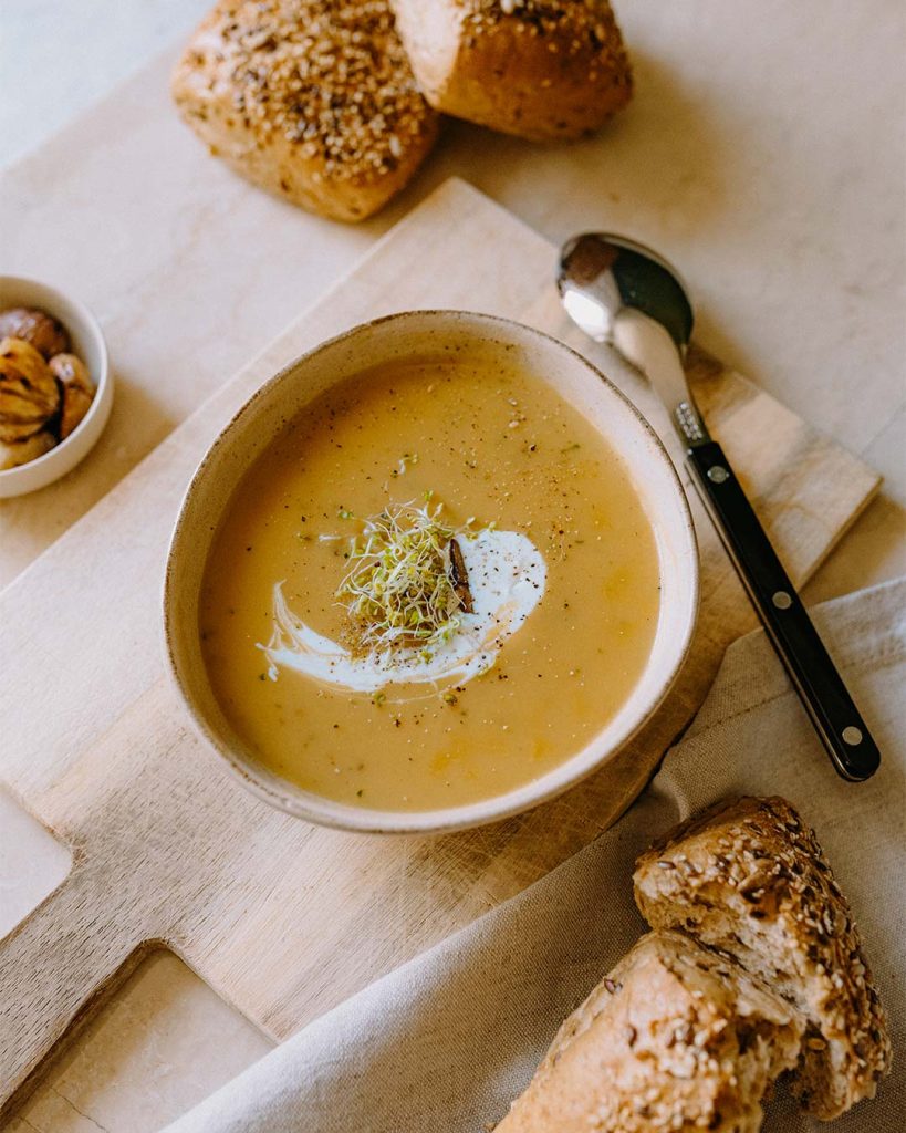 MARONENSUPPE MIT KRAFTKORNBRÖTCHEN